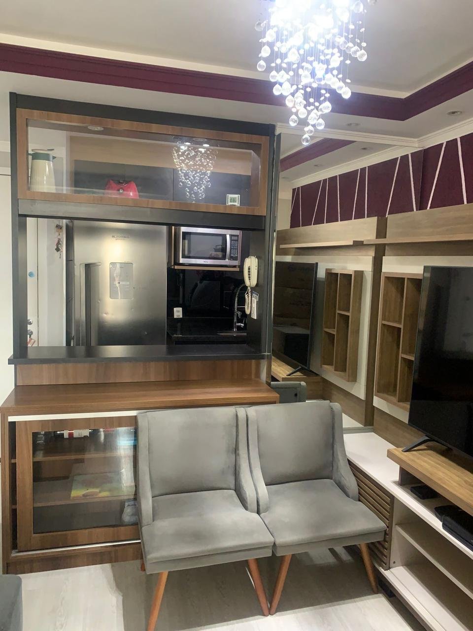 Lindo apartamento aconchegante e de fino acabamento de 60m² em andar baixo localizado no bairro da Vila Maria, distribuído em 03 dormitórios com armários sendo 01 (suíte), sala para dois ambientes com teto todo em gesso e varanda gourmet envidraçada, cozinha já com armários panejados, 01 banheiro social, área de serviço e 01 vaga de garagem.